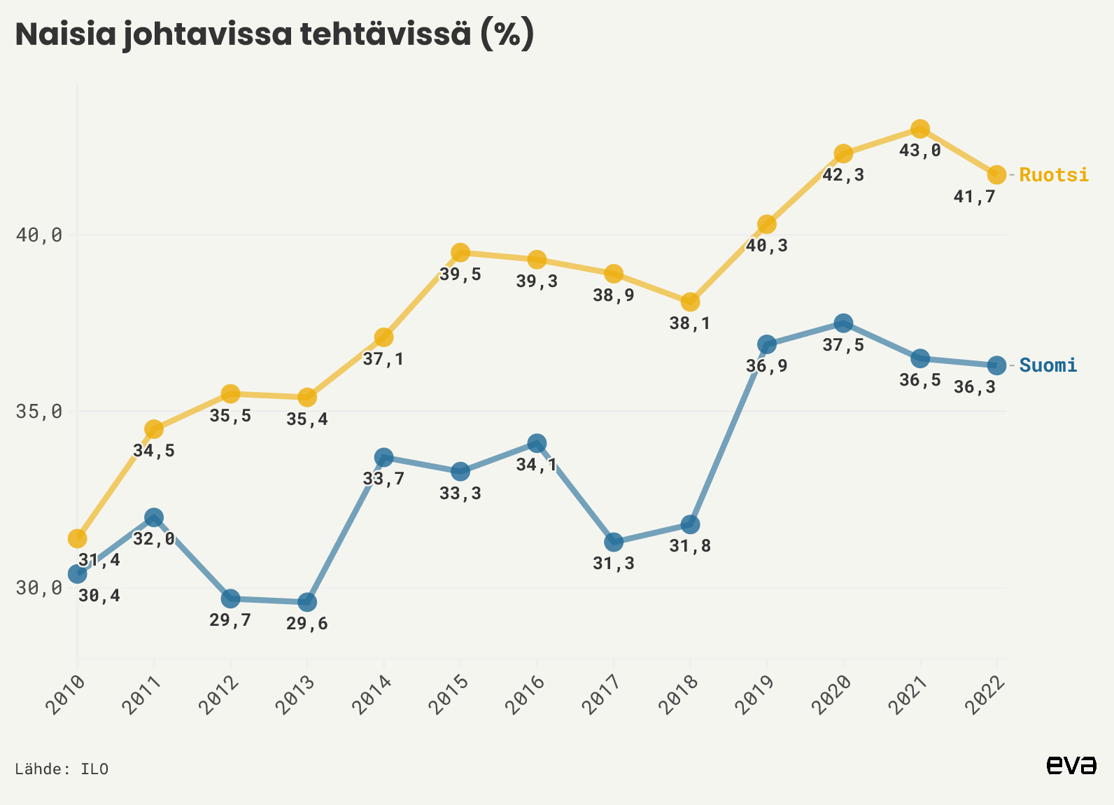 Naisjohtajien määrä junnaa paikallaan Suomessa