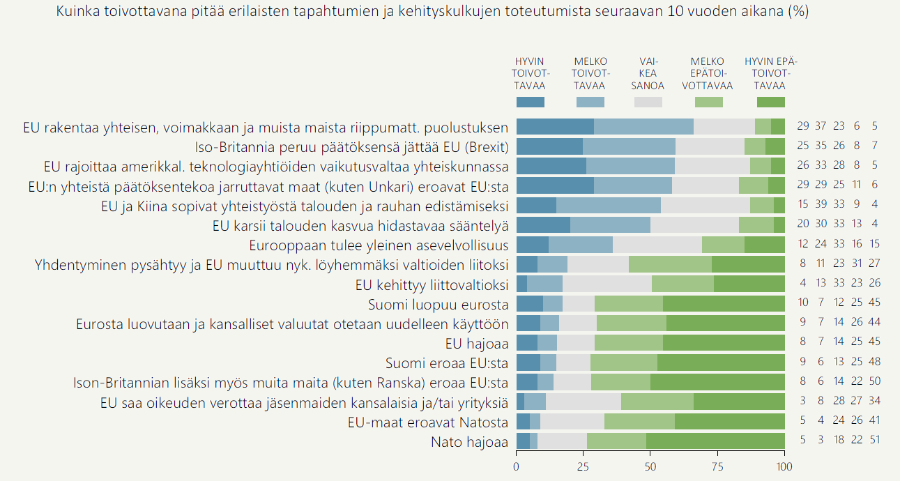 Vahvemman EU:n rakentaminen edellyttää kuitenkin jäsenmailta yhteistä tahtotilaa ja saumatonta poliittista yhteistyötä. Suomalaiset toivovatkin, ettei hajaannus saisi EU:ssa jalansijaa, vaan päinvastoin EU:n rivit tiivistyisivät ja lisäksi Iso-Britanniakin palaisi unioniin.