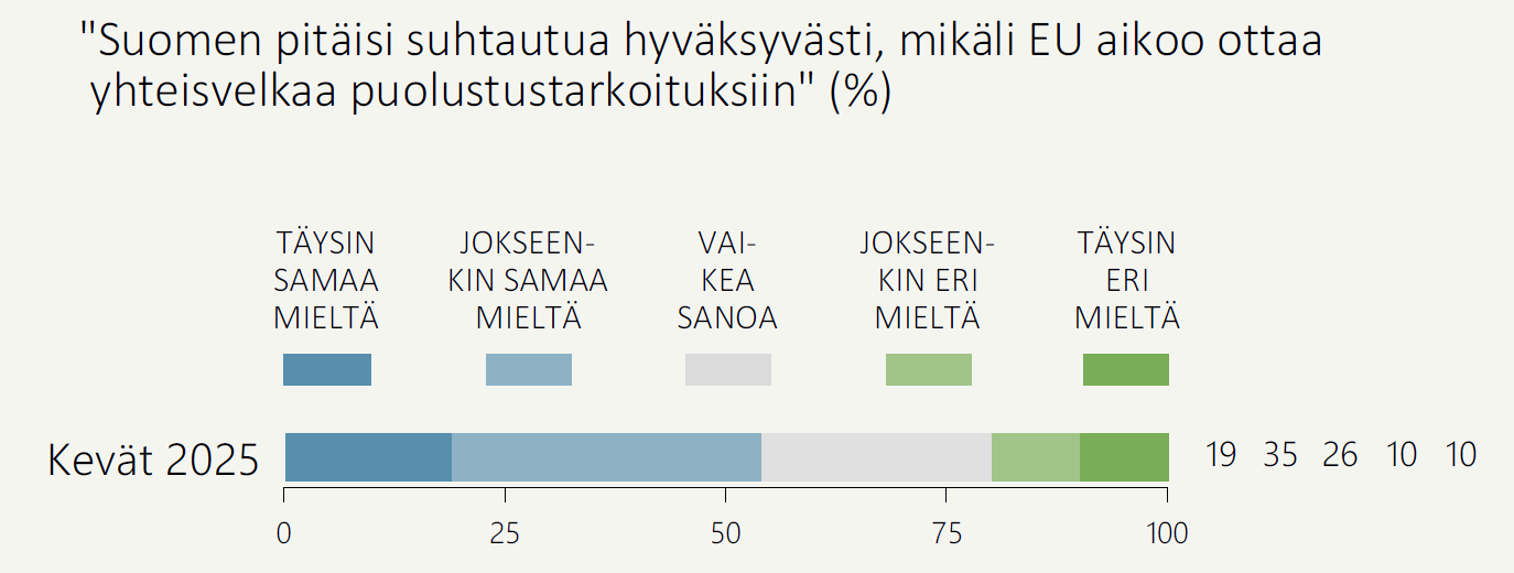 Suomalaiset haluavat EU:lle yhteisen puolustuksen ja ovat valmiita yhteisvelkaan sen rahoittamiseksi