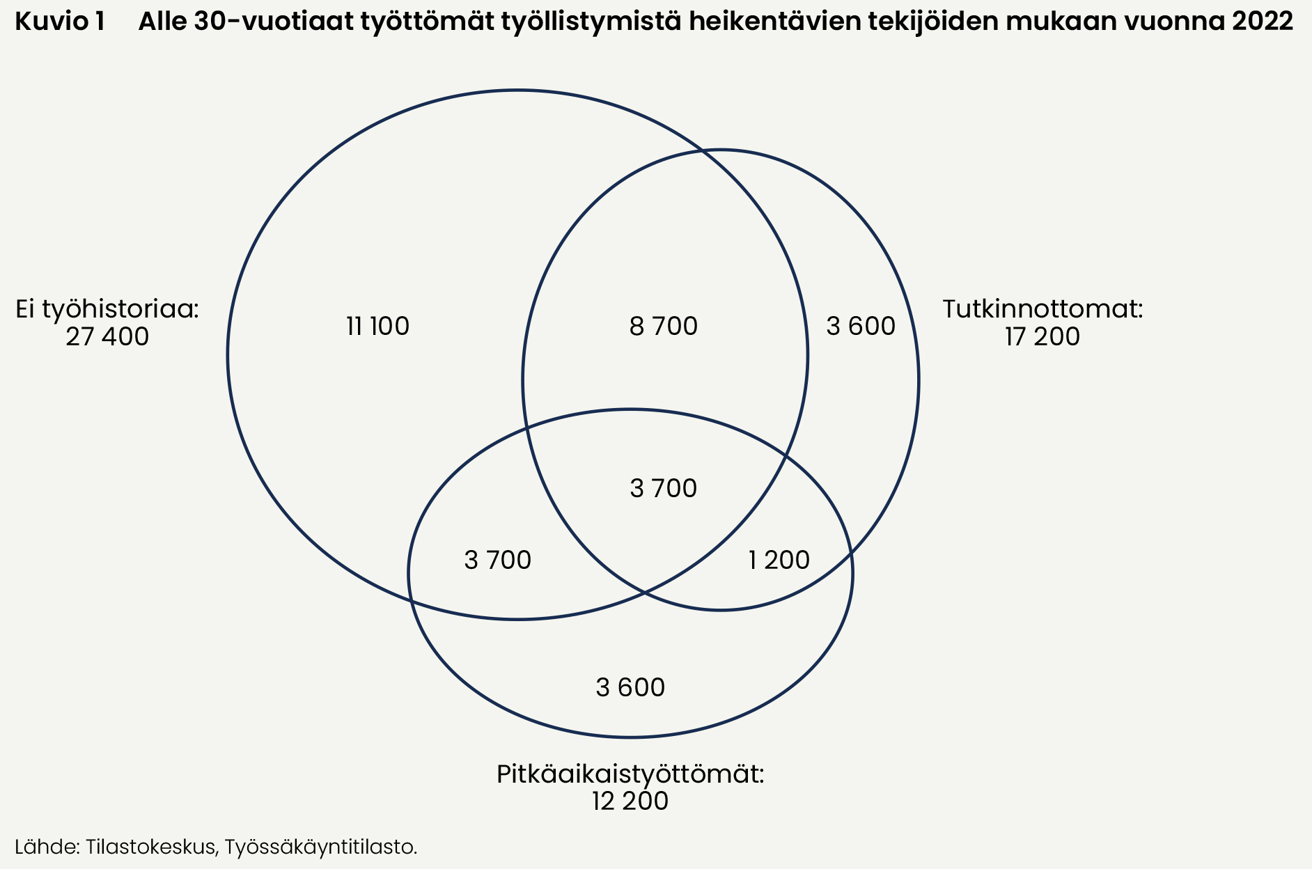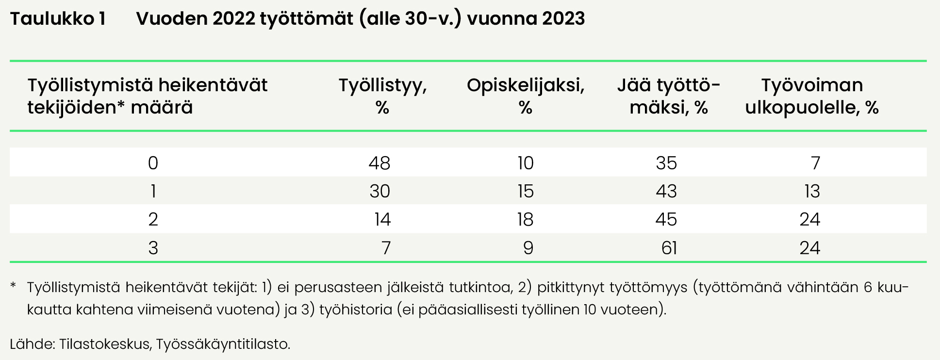 - Suomessa oli vuonna 2022 noin 27 000 työtöntä nuorta, jotka eivät koskaan ole olleet pääasiallisesti työllisiä.